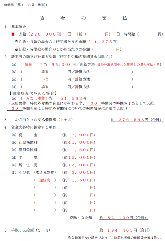 ※今回は、海外にいる外国人を1号特定技能外国人として雇用するために作成した雇用条件書の記載例です。
